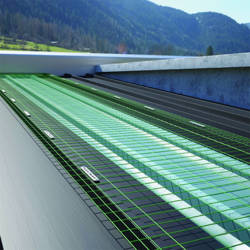 Installing OVERNET is convenient: it is easily installed outdoors on trapezoidal metal sheets or trapezoidal sandwich panels and is supplied in 25 m rolls.
